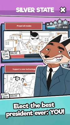 Willst du DER Präsident werden? Dann mach dich bereit für eine wilde Reise! Dieses Spiel lässt dich auf unkonventionelle Weise die Macht erobern. Erlebe eine einzigartige Präsidentschaftssimulation und zeige, dass du das Zeug zum Staatsoberhaupt hast – aber auf deine ganz eigene, wilde Art.