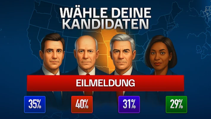 Von der akribischen Auswahl Ihrer Kandidaten bis zur fieberhaften Mobilisierung der Wähler – der Puls Ihrer politischen Kampagne schlägt unaufhörlich. Jede strategische Bewegung, jede öffentliche Rede und jede Reaktion zählt, während Sie auf Eilmeldungen, nationale Krisen und die komplizierte Weltbühne reagieren. Verkünden Sie wegweisende Initiativen, lenken Sie Steuergelder neu, um die Wirtschaft anzukurbeln, und meistern Sie das fragile Gleichgewicht zwischen diplomatischer Finesse und militärischer Stärke. Das Management von Staatsfinanzen, Schulden und nationalem Wachstum wird zu Ihrem täglichen Brot in dieser tiefgehenden Tycoon-Erfahrung.